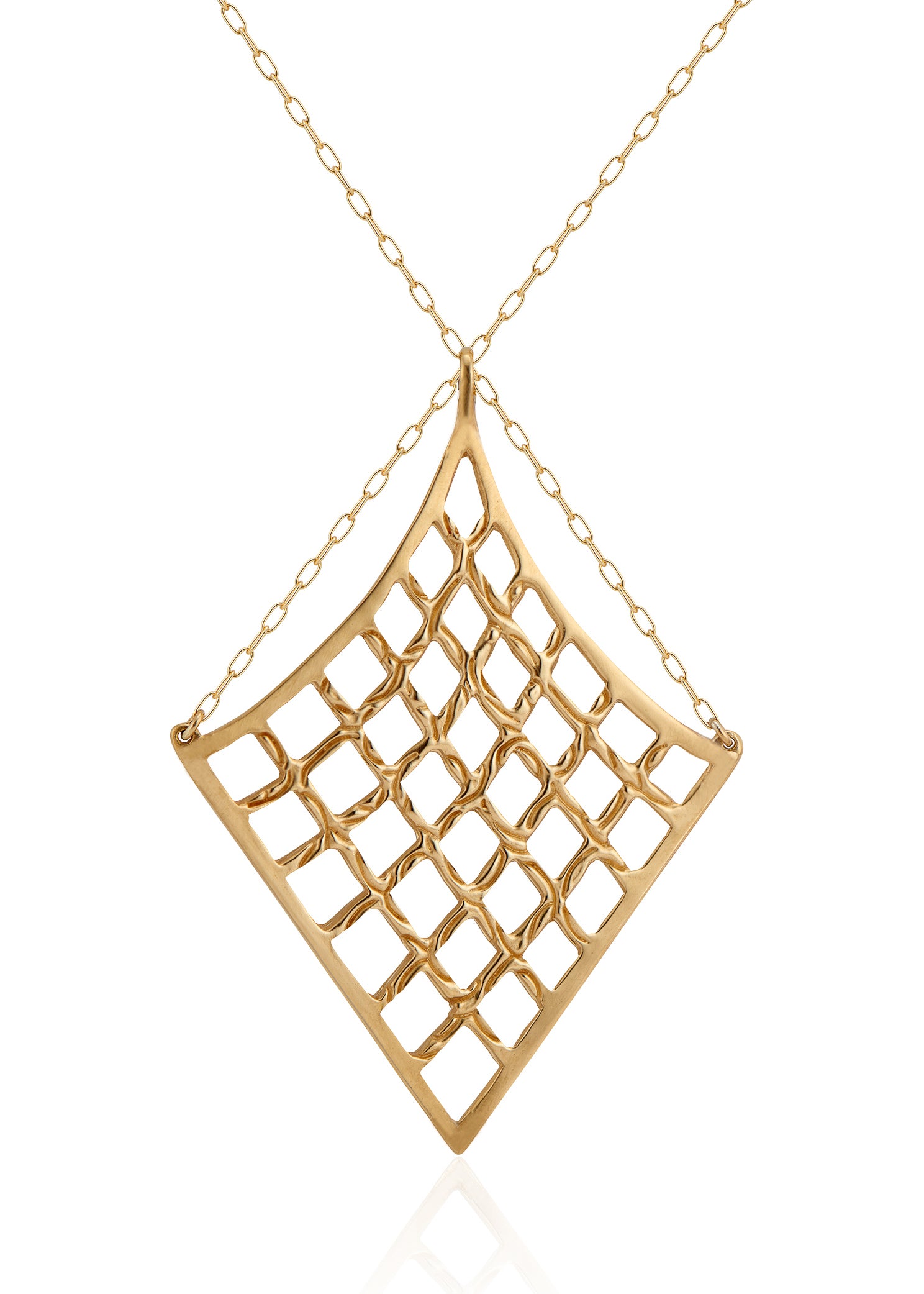 As formidable as the princess for which it is named. With its prominent presence and detailed gold lattice work, the Shera necklace is a balance of delicate, bold and eye-catching—an empowering piece that makes a statement.